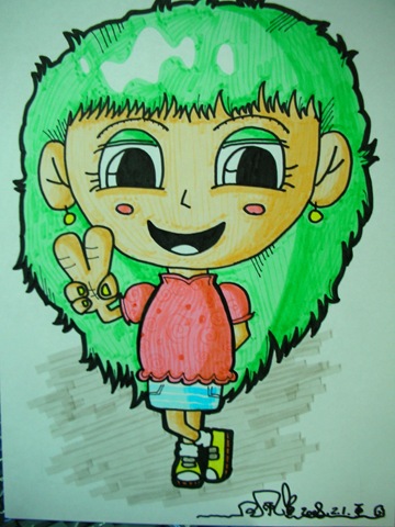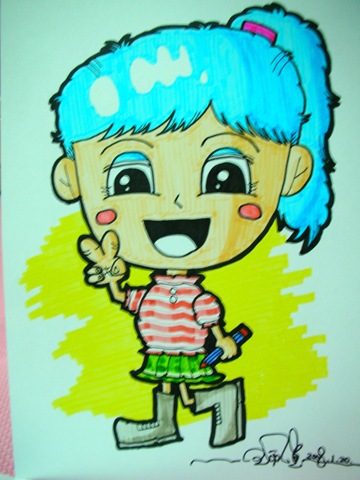 步驟四:用雙頭筆著色~順序如下~~皮膚>頭髮>衣服>鞋子>背景色